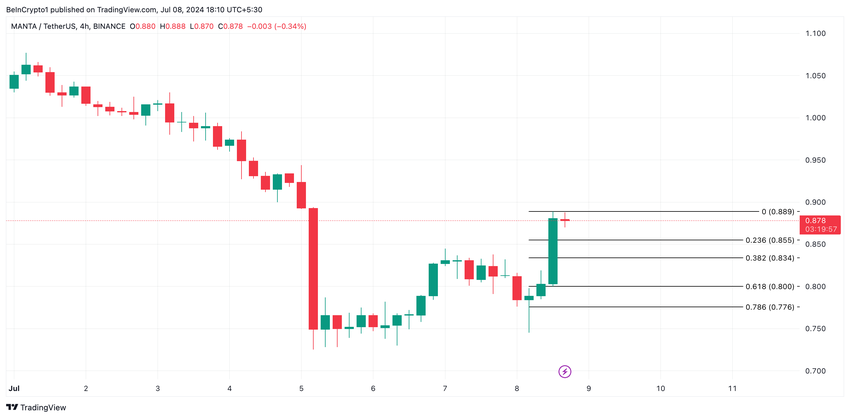 Hvis MANTA opprettholder sin opptrend og etterspørselen etter lange posisjoner fortsetter å øke, kan verdien stige til $0,89.
