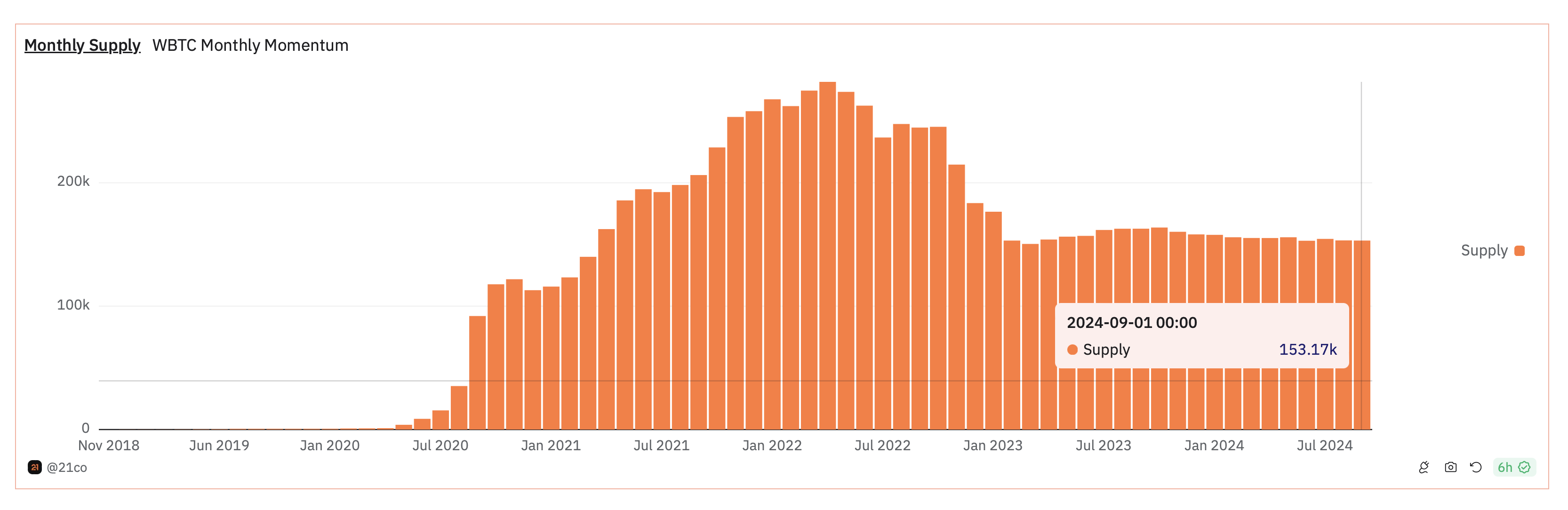 DeFi-plattformen MakerDAO har også uttrykt bekymringer og begynt å vurdere risikoene knyttet til BitGos nye forvaringsmodell for WBTC. Som svar stemte utlånsprotokollen for å stoppe nye brukere fra å låne mot WBTC, noe som førte til et fall i etterspørselen. Data fra Dune støtter dette, og viser en nedgang i tilbudet på over 1000 tokens i august.