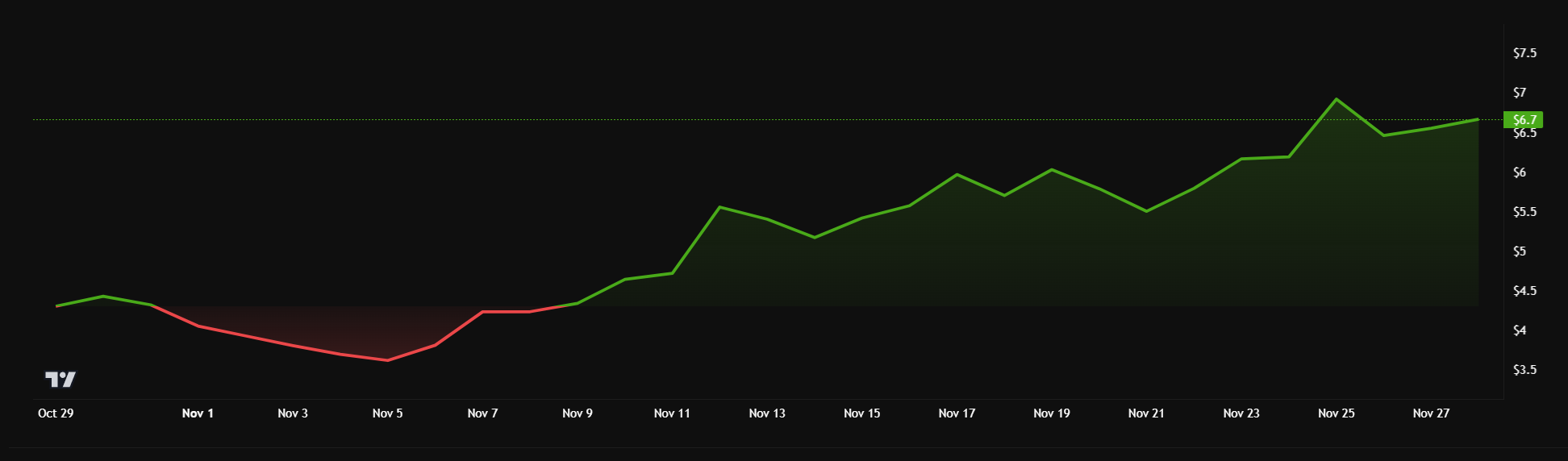 NEAR Protocol prisytelse gjennom november. Kilde: BeInCrypto