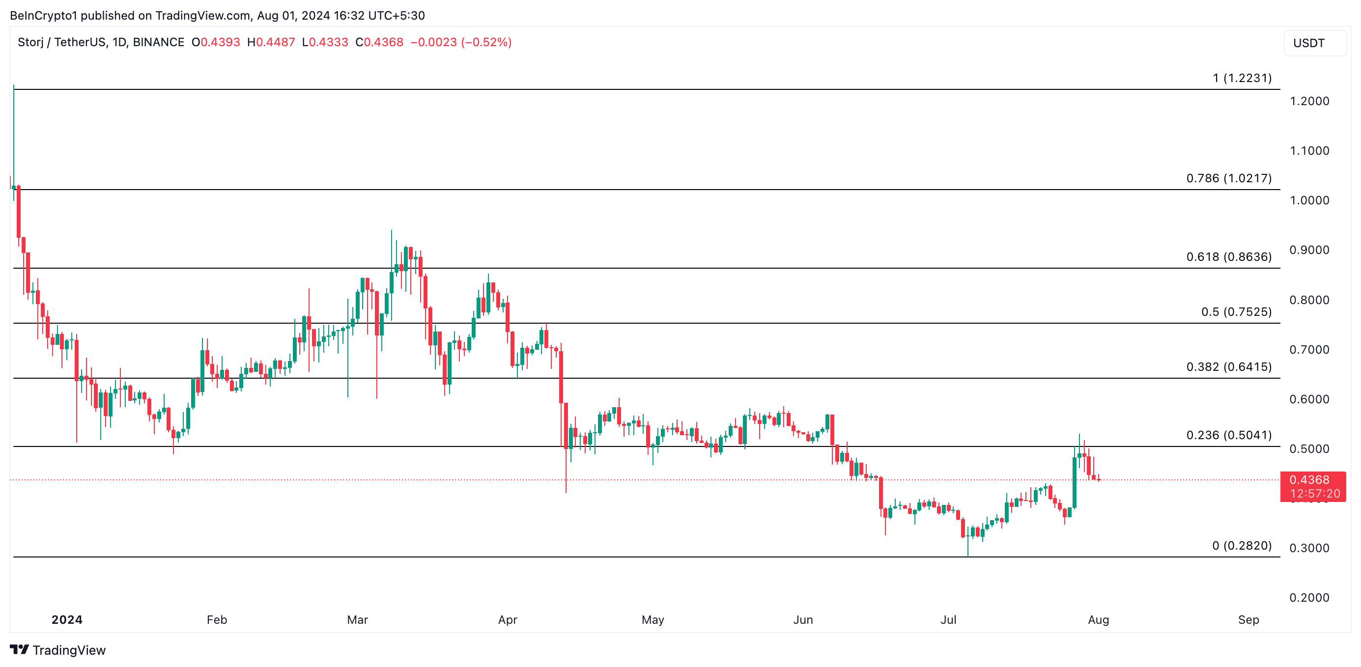 En økning i etterspørselen etter STORJ på det nåværende prisnivået kan utløse en oppadgående trend. Skulle dette skje, er tokenets neste prismål $ 0,50.