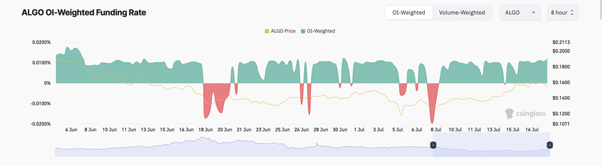 Et annet bullish signal som bekrefter muligheten for ytterligere prisvekst er ALGOs positive finansieringsrate på tvers av kryptovalutabørser. Siden 10. I følge Coinglass-data er den for tiden 0,01 %.