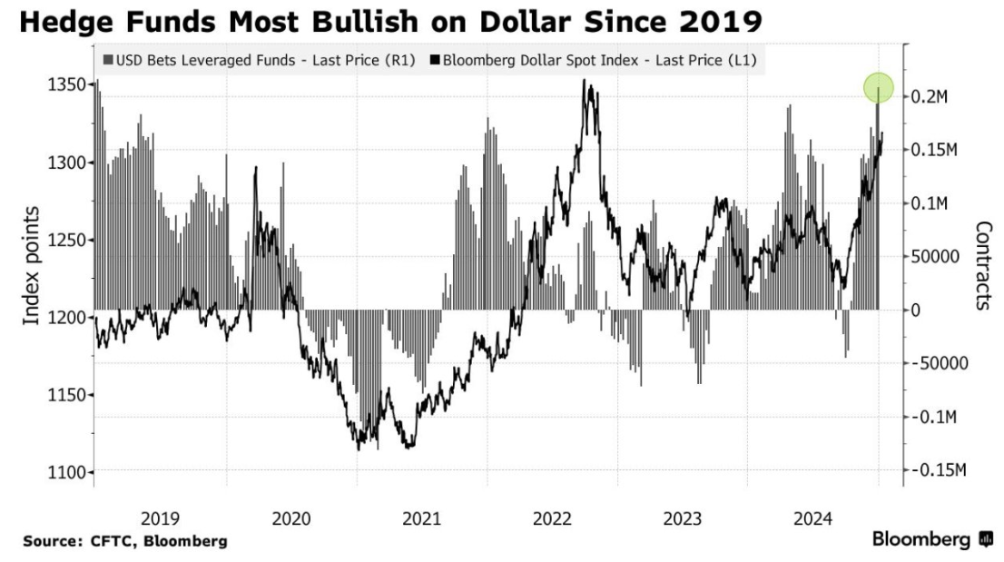 Som et tillegg til diskusjonen, fremhevet den finansielle analyseplattformen Barchart at hedgefond har vært de mest bullish på den amerikanske dollaren siden tidlig i 2019. Denne følelsen reflekterer den styrkende dollarens appell som en trygg havn midt i pågående globale økonomiske usikkerheter.