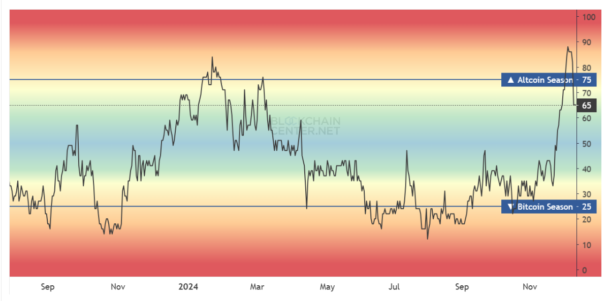 Den overordnede makro-momentumet i altcoin-markedet antyder en mangel på vedvarende bullish sentiment. Altcoin-sesongindeksen, som måler ytelsen til de 50 beste altcoins sammenlignet med Bitcoin, har falt betydelig.