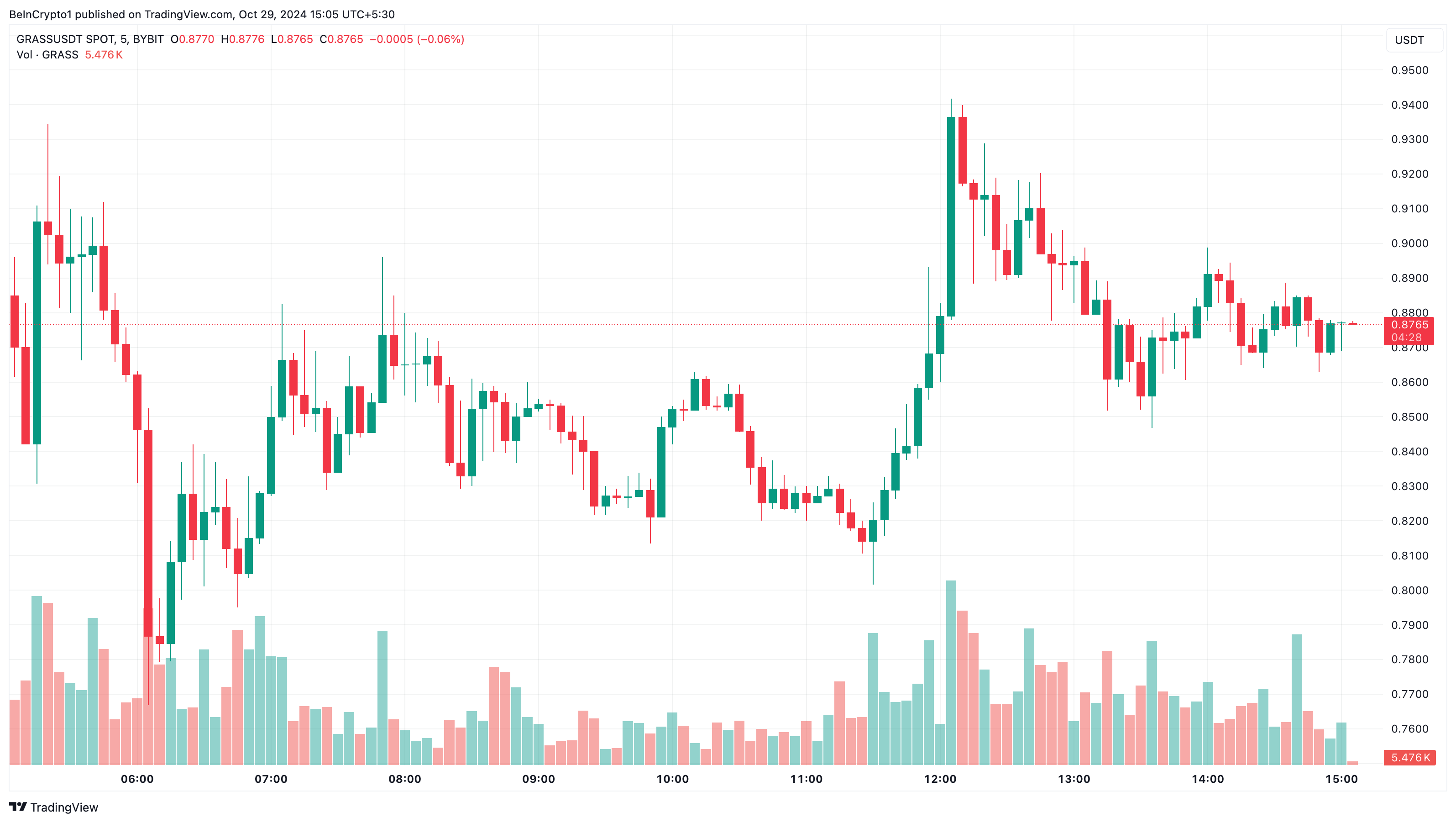 Etter utviklingen har GRASS, hvis lanseringspris var nær $ 1, falt til $ 0,88, og mistet 4,20 % av sin verdi de siste 24 timene. Siden det fortsatt er tidlige dager, kan altcoinen fortsatt være i prisoppdagelsesmodus. Derfor er det kanskje ikke riktig tidspunkt å forutsi hvor den kan gå videre.