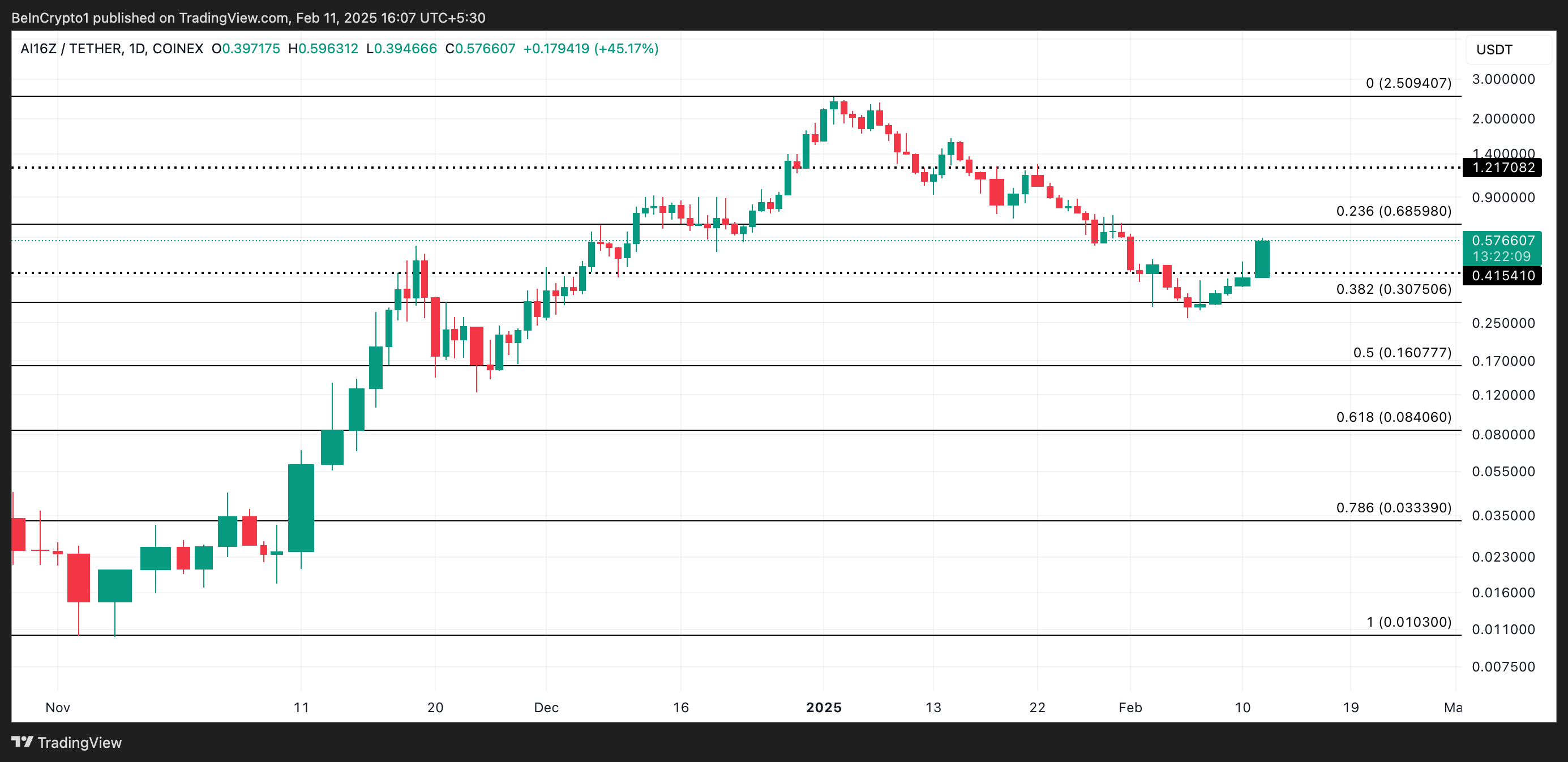 Hvis dette momentumet fortsetter, kan AI16Z bryte over $ 0,68 og sikte mot $ 1,21.