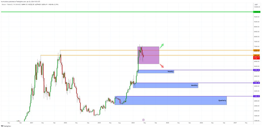 I mellomtiden gir analytiker Murad Mahmudov et mer nyansert syn. Han fokuserer på de kortsiktige markedsbevegelsene innenfor et spesifisert område som vil avgjøre Bitcoins skjebne.