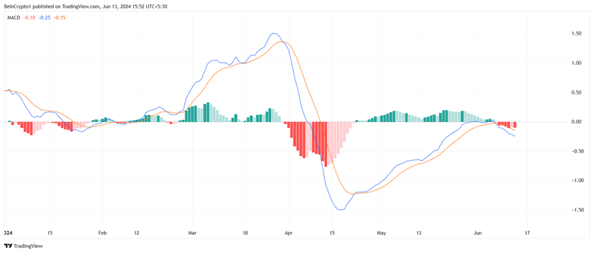 I tillegg gir Moving Average Convergence Divergence (MACD) innsikt i det bredere markedets sentiment. MACD er en teknisk analyseindikator som viser forholdet mellom to glidende gjennomsnitt av et verdipapirs pris. Det hjelper med å identifisere potensielle kjøps- og salgssignaler basert på konvergens eller divergens av disse gjennomsnittene.