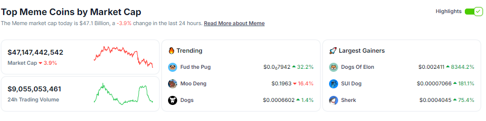 Meme coins har en tendens til å stige når Bitcoin viser bullish momentum. Det motsatte skjer nå, som sett på torsdag, da markedskapitaliseringen for meme coins falt nesten 4 %, ifølge CoinGecko, mens Bitcoin trakk seg tilbake fra $ 65 000 til litt over $ 60 000.