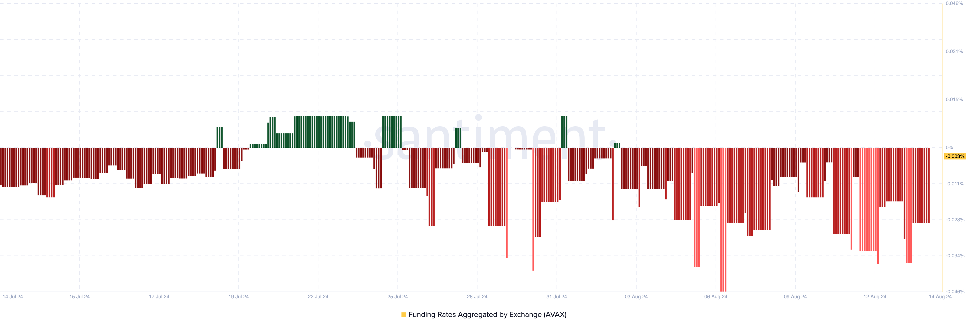 Når hendelsen nærmer seg, viser on-chain data en bemerkelsesverdig forskjell i sentiment mellom hvaler og tradere i derivatmarkedet. Ifølge Santiment er AVAXs Funding Rate negativ.