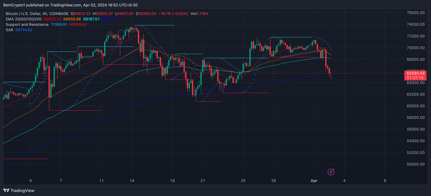 Det er imidlertid også en mulighet for en reversering av denne trenden. Hvis kjøperne gjenvinner kontrollen og presser markedet inn i en oppadgående trend, kan BTC utfordre motstandsnivået på 71,700 dollar. Å overvinne denne barrieren vil kreve betydelig kjøpepress, men kan signalisere en fornyet bullish stemning og en potensiell reversering av de nåværende bearish utsiktene.