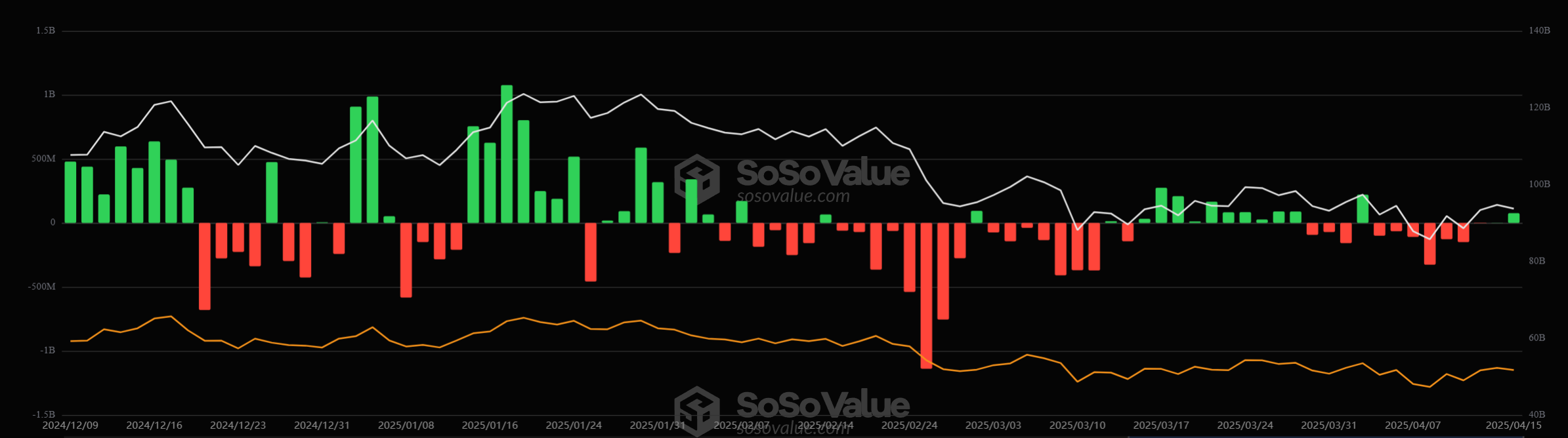 ETF-utstederne har stor tillit til Bitcoin, noe som har holdt prisen stabil gjennom tollkaoset. Hvis de mister den tilliten av en eller annen grunn, kan det føre til en kraftig etterspørselkrise.