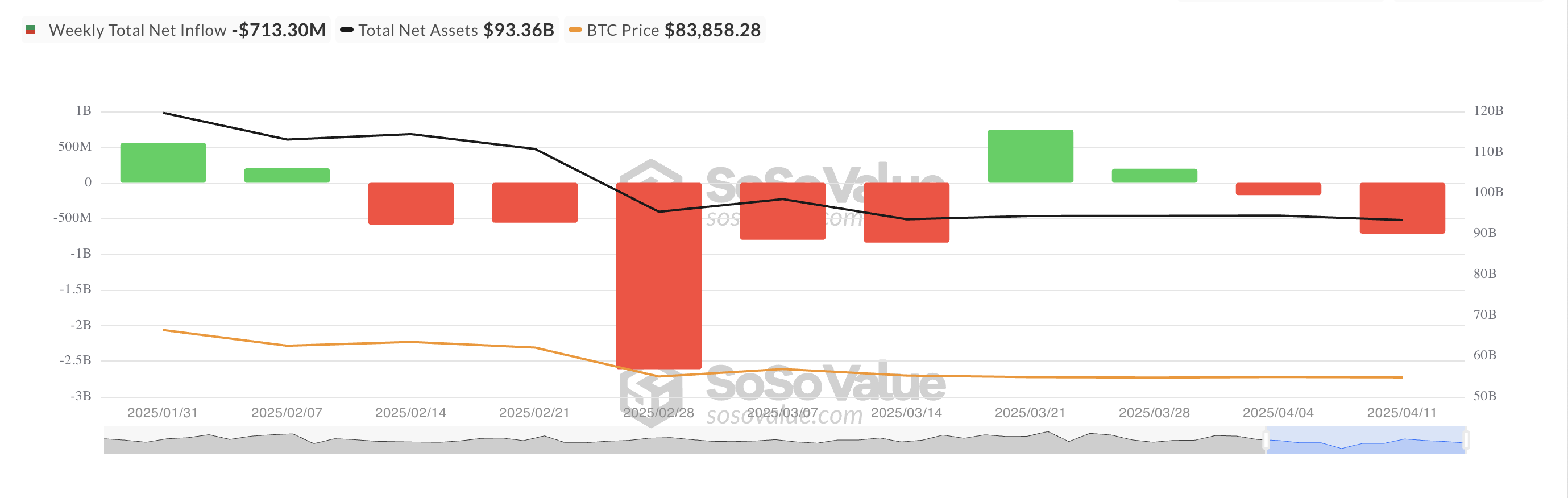 Mellom 7. april og 11. april trakk institusjonelle investorer en del av kapitalen sin fra BTC-fond. Dette trekket var i stor grad drevet av bredere markedsproblemer, som holdt BTCs pris under den ettertraktede $ 85 000-grensen og dro den ned til så lavt som $ 74 000 flere ganger.