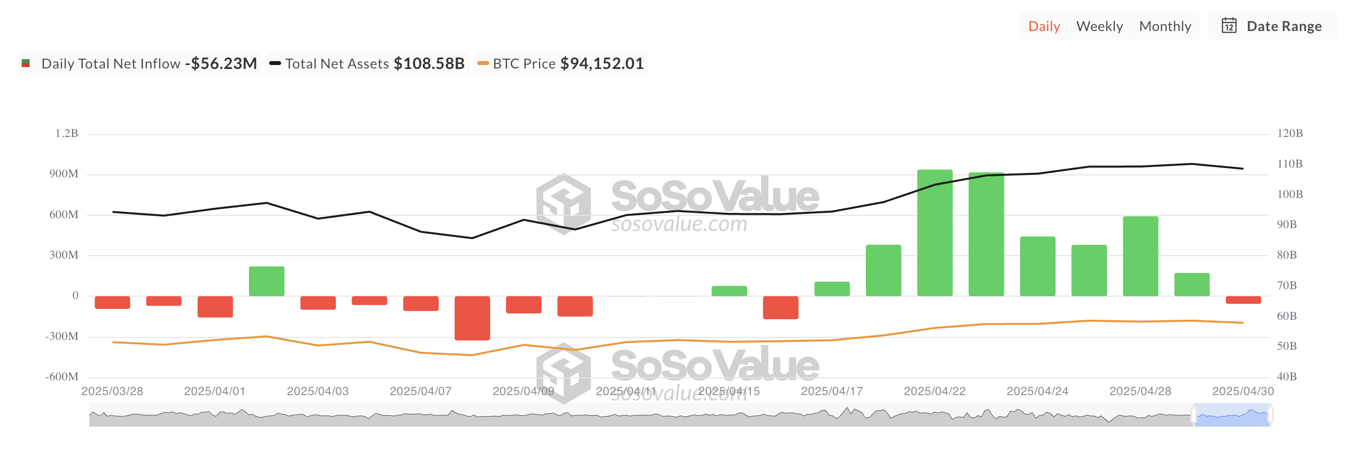 Total Bitcoin Spot ETF Net Inflow. Kilde: SosoValue