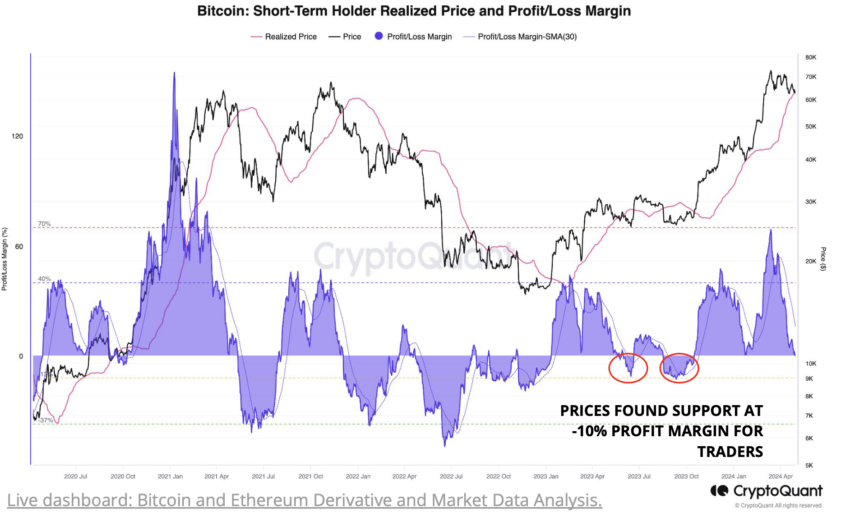 “$ 55,000 til $ 57,000-nivået er 10 % under den nåværende realiserte prisen på kortsiktige innehavere, som har vært den ultimate støtten for priser under oksemarkeder. Nåværende Bitcoin pris er allerede under kortsiktige eieres realiserte pris, “forklarte CryptoQuant.