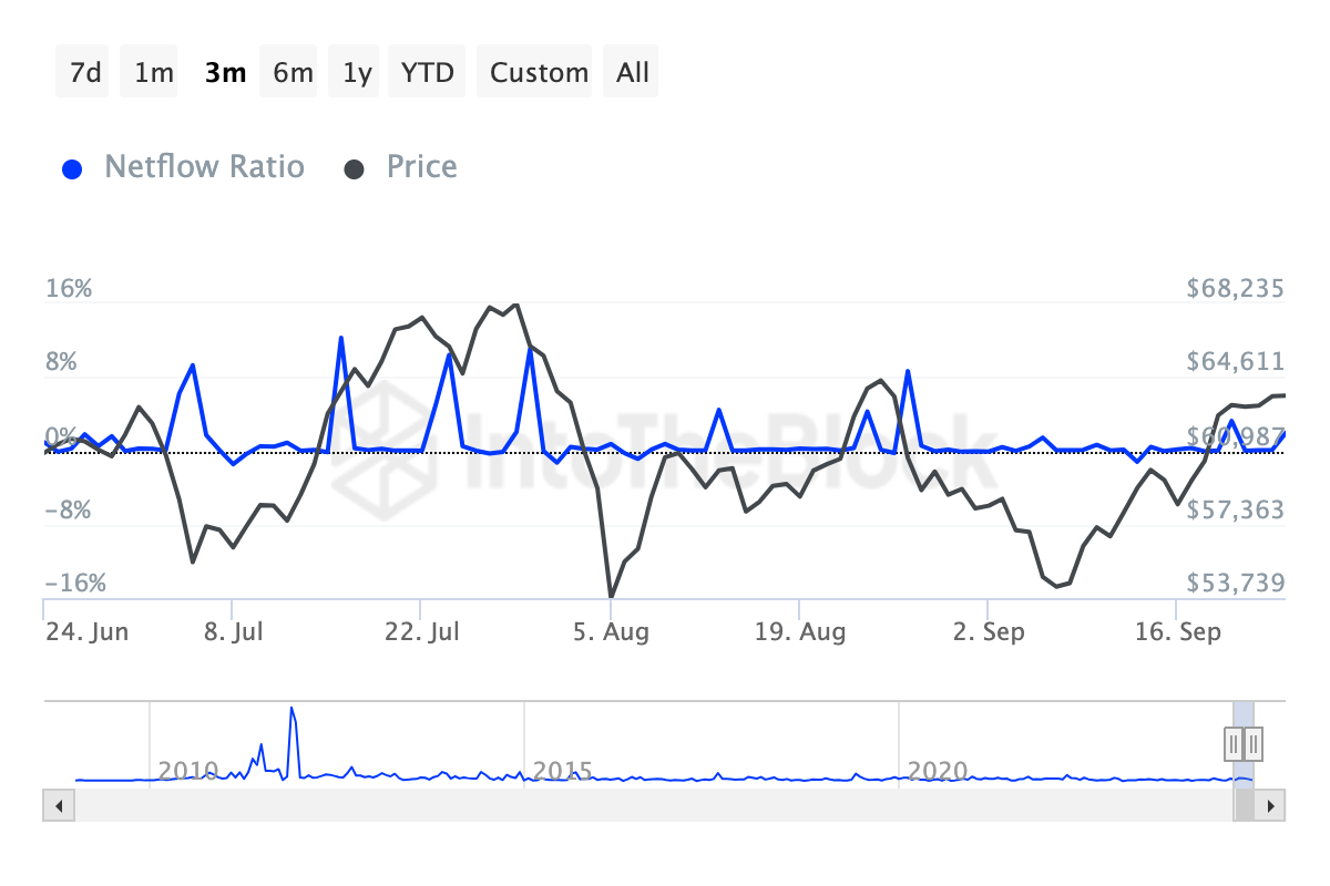 Til tross for transaksjonene, viser Netflow-forholdet for store eiere til børsnettostrøm en bemerkelsesverdig nedgang de siste syv dagene. Denne nettostrømmen er forskjellen mellom antall mynter sendt til børser av Bitcoin-hvaler trukket fra de som er trukket tilbake.