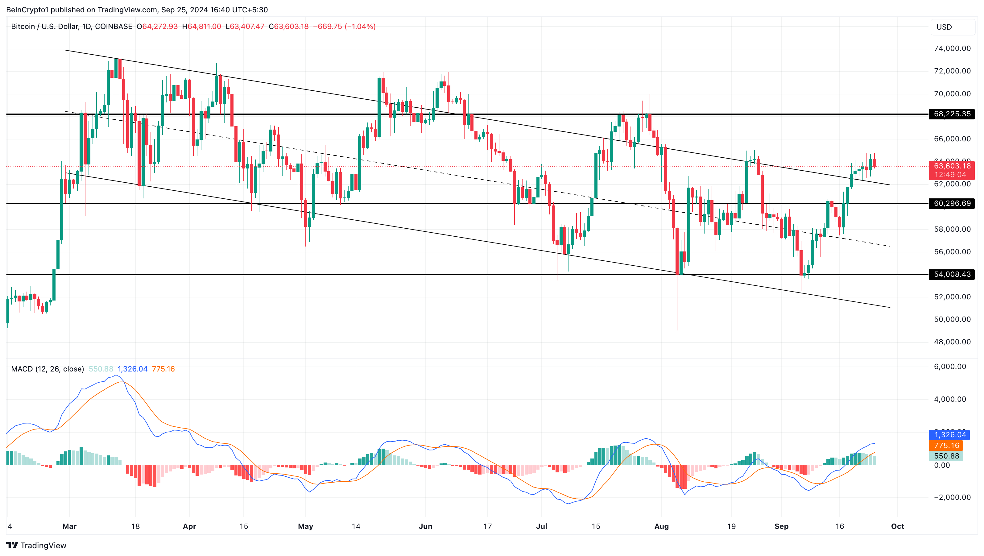 I tillegg er Moving Average Convergence Divergence (MACD) positiv. Som en teknisk oscillator brukt til å identifisere trender, indikerer den positive MACD-lesningen at momentumet rundt Bitcoin er bullish.