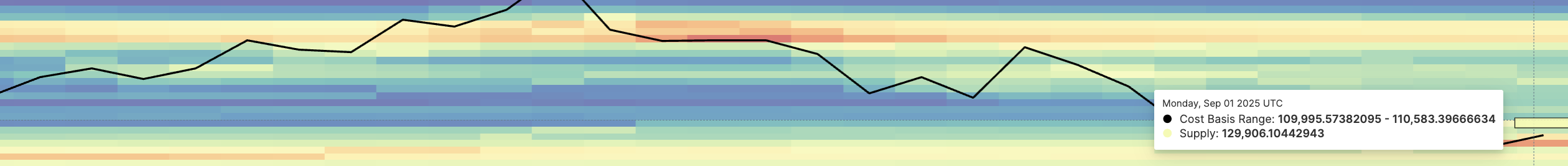På nedsiden holder en annen klynge mellom $ 108 250 og $ 108 829 mer enn 223 000 BTC, og gir sterk støtte.