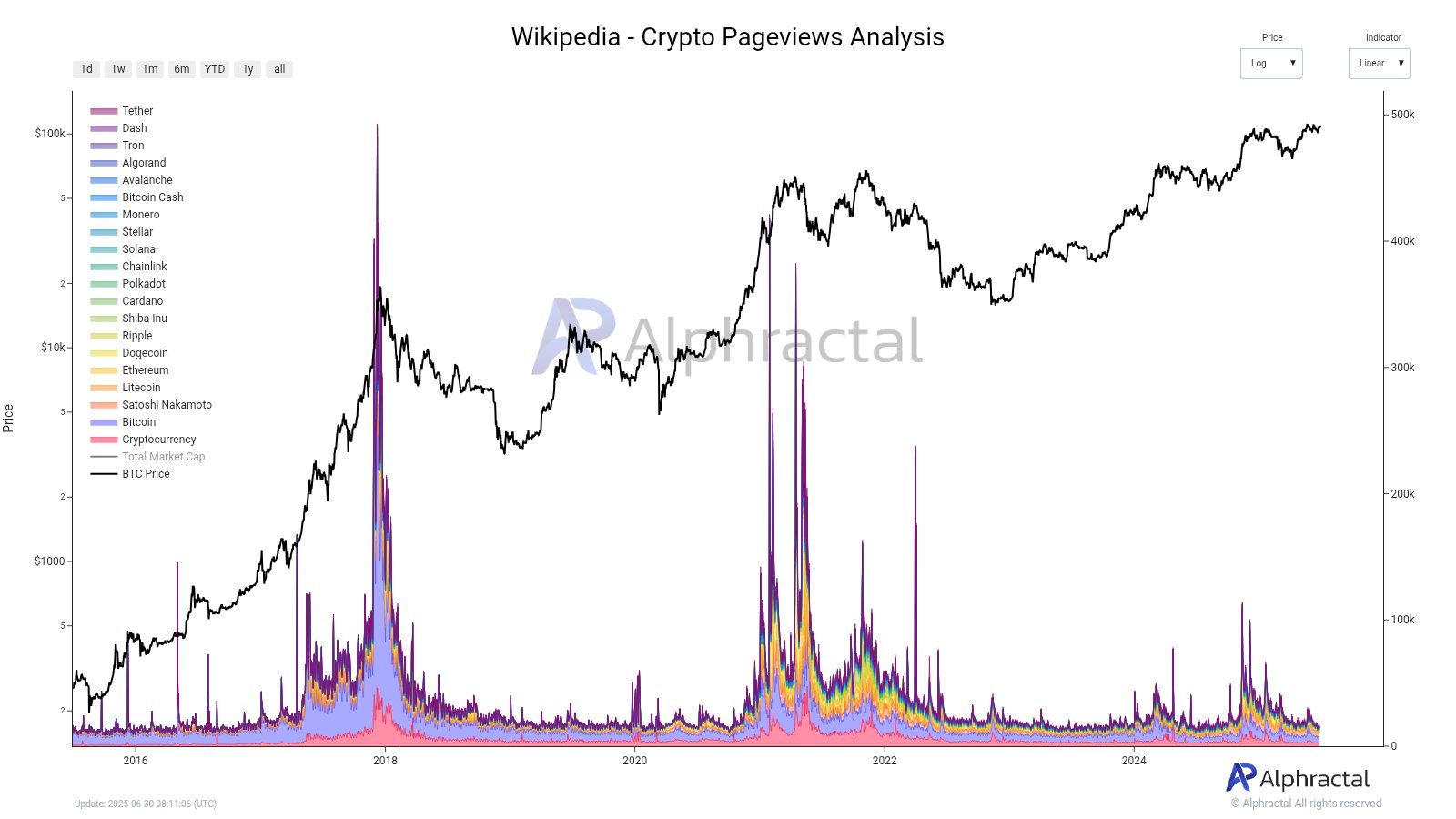 Til tross for at Bitcoin (BTC) holder seg stabil over $ 100 000, er den globale apati mot den uomtvistelig. Google-søk etter Bitcoin og Wikipedia-sidevisninger relatert til ulike kryptovalutaer og blokkjeder har falt til nivåer sett under tidligere Bitcoin-syklus bunner.