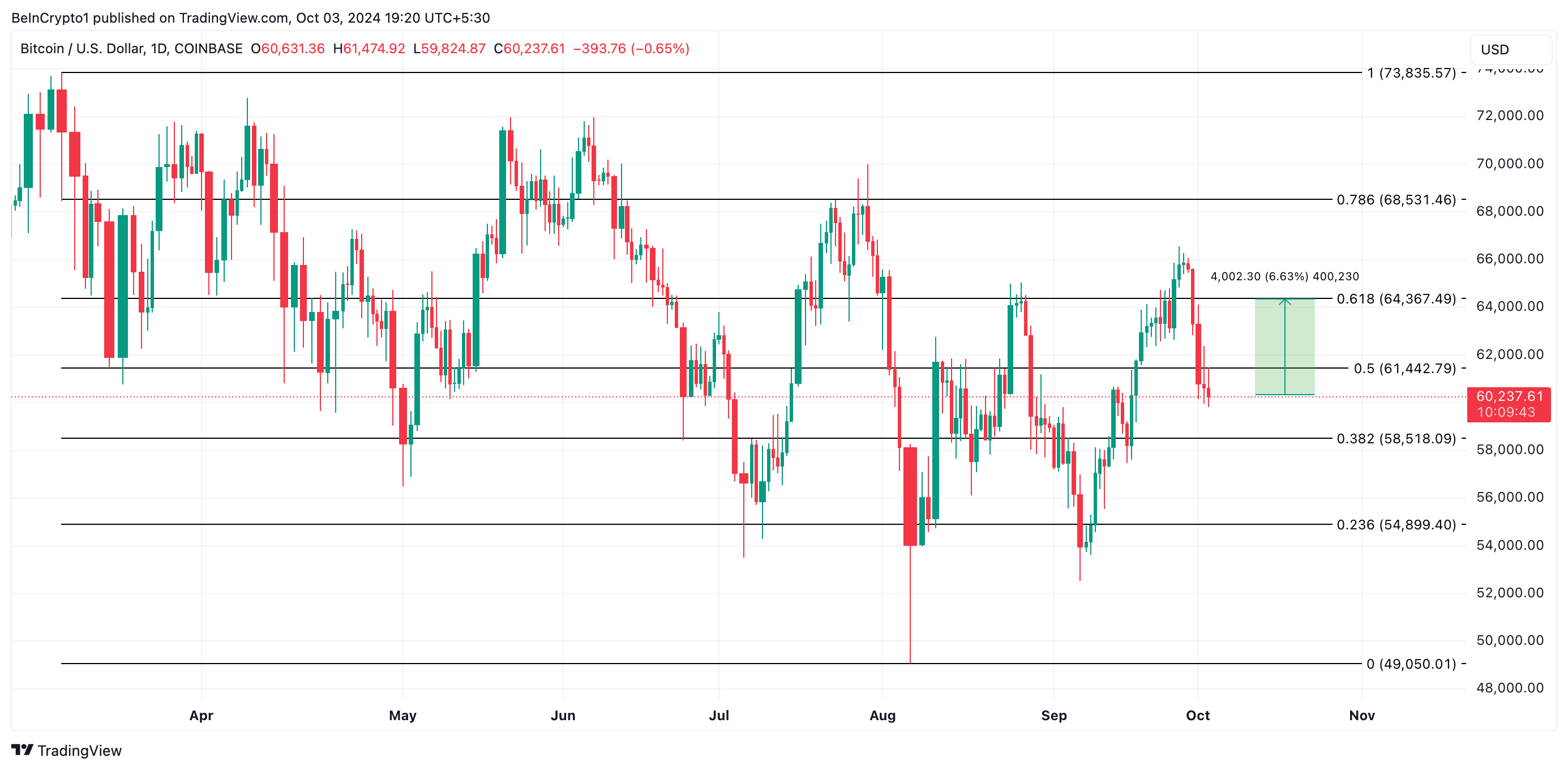 Imidlertid, hvis markedssentimentet skifter fra bearish til bullish, kan Bitcoin reversere sin bane, og ugyldiggjøre det bearish utsiktene. I så fall kan BTC rally mot $ 64 367 på kort sikt.