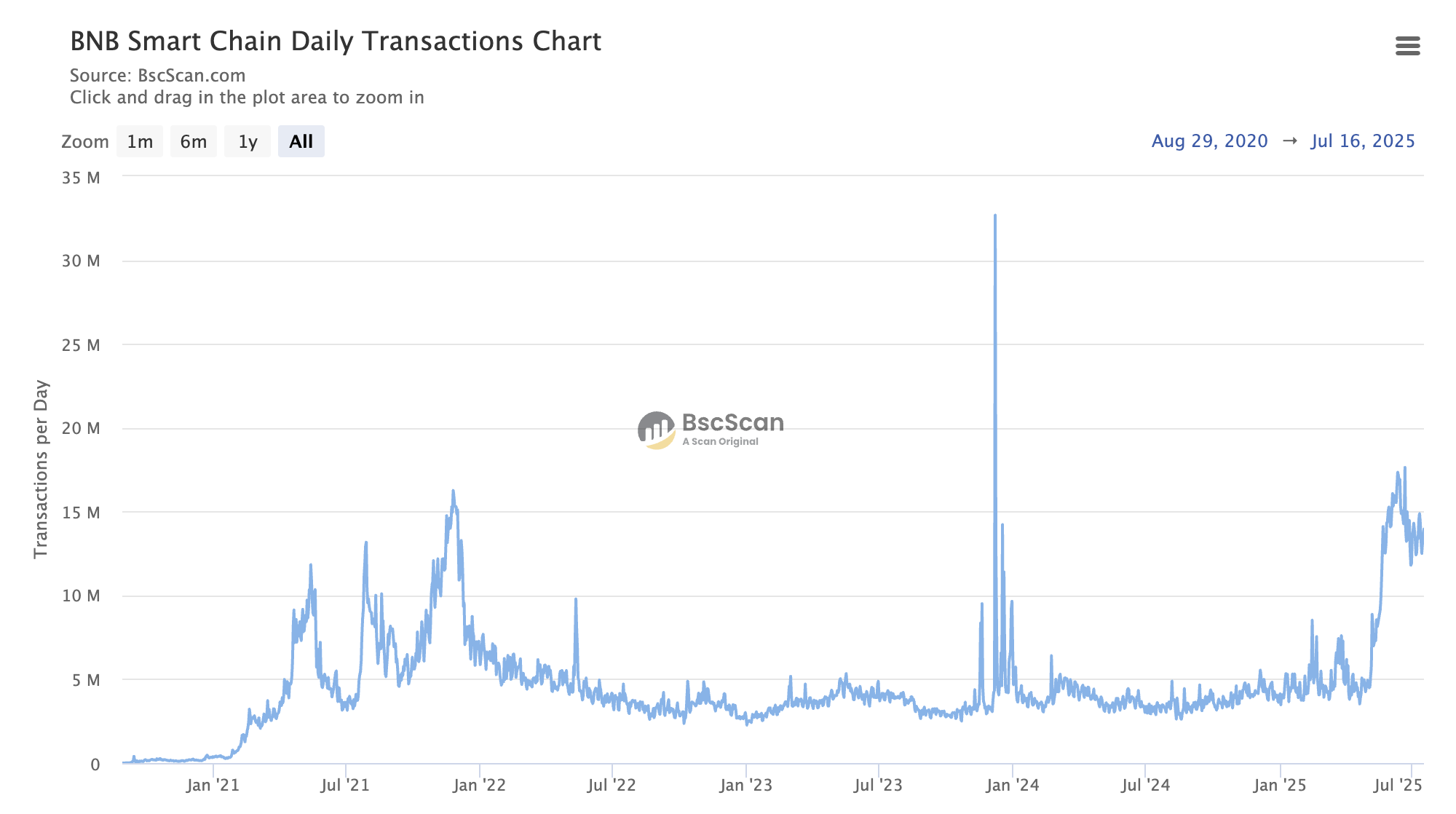 Gjennomsnittlige gassavgifter har blitt redusert til bare $ 0,01, noe som gjør BNB Chain til et av dagens mest kostnadseffektive blokkjedenettverk. Merkverdig er det også at plattformen registrerte en 95 % reduksjon i skadelig MEV-aktivitet, noe som forbedrer rettferdigheten i on-chain-opplevelsen.