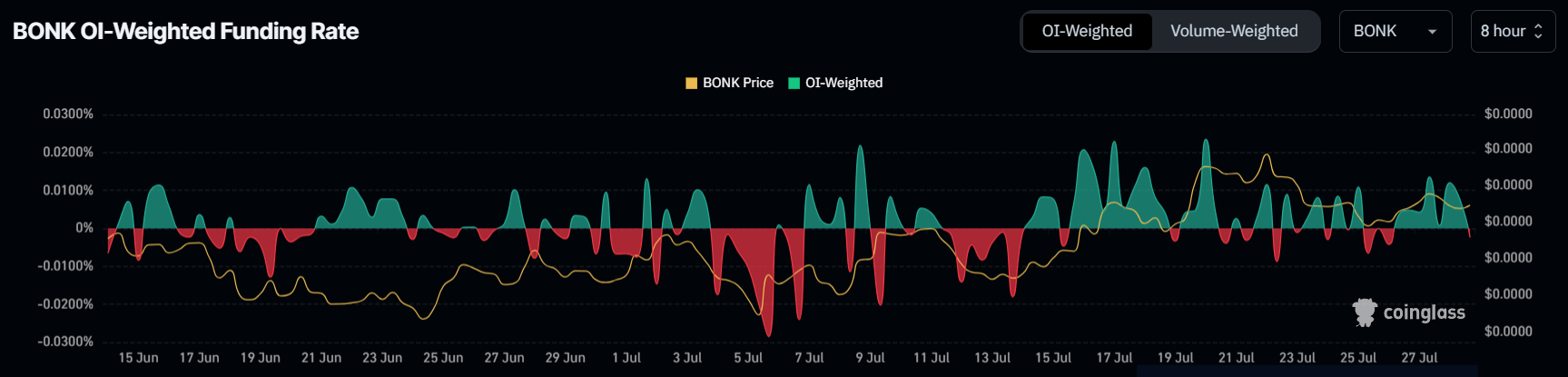 BONK kurs skuffet ikke investorene sine, men levde heller ikke opp til forventningene deres, noe som er tydelig i deres skiftende sentiment