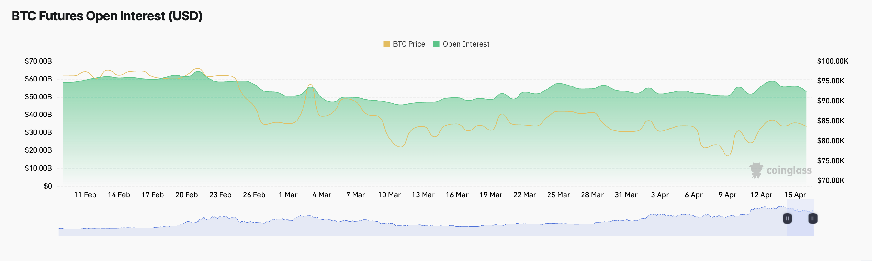 Nedgangen i BTCs åpne interesse og pris antyder at tradere lukker sine posisjoner i stedet for å åpne nye. Denne trenden viser et marked i tilbaketrekning, hvor tradere avslutter gearede handler for å unngå ytterligere tap eller likvidasjoner.