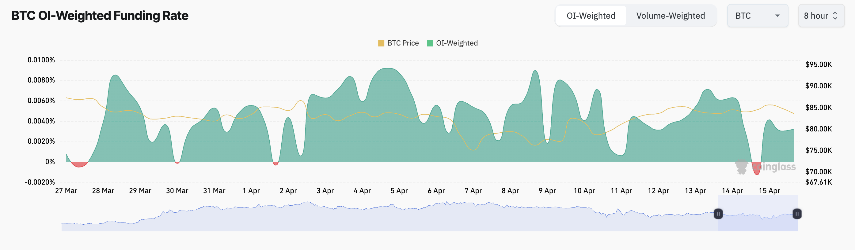 Myntens finansieringsrate har snudd tilbake til positivt territorium og er for øyeblikket på 0,0032 % ved presstid. Dette signaliserer at mange futures tradere fortsatt åpner long-posisjoner og forventer en oppgang.