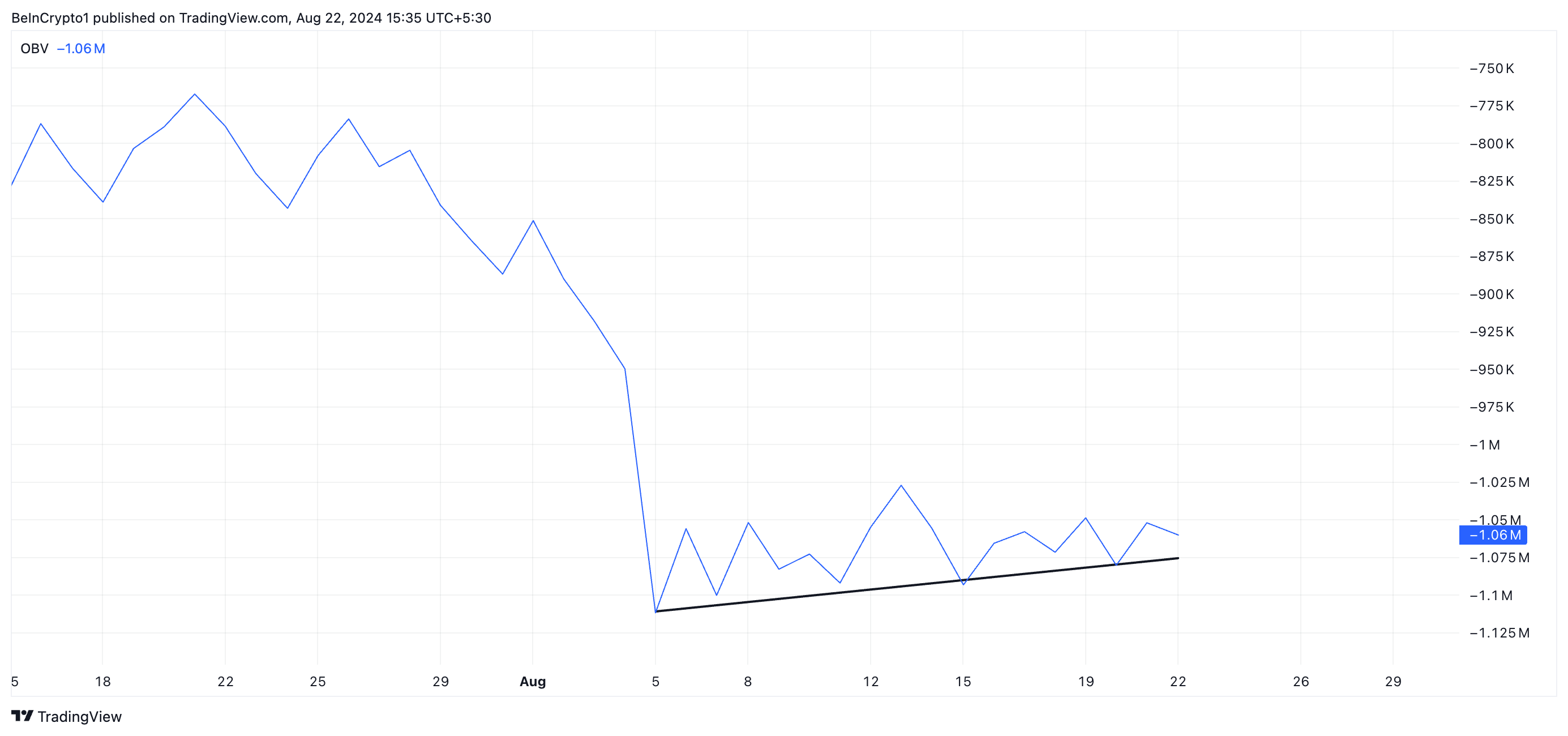 I tillegg har BTCs on-balance volume (OBV) steget jevnt siden det stigende trekantmønsteret begynte. Denne indikatoren måler kjøpe- og salgspress i en aktivas marked.