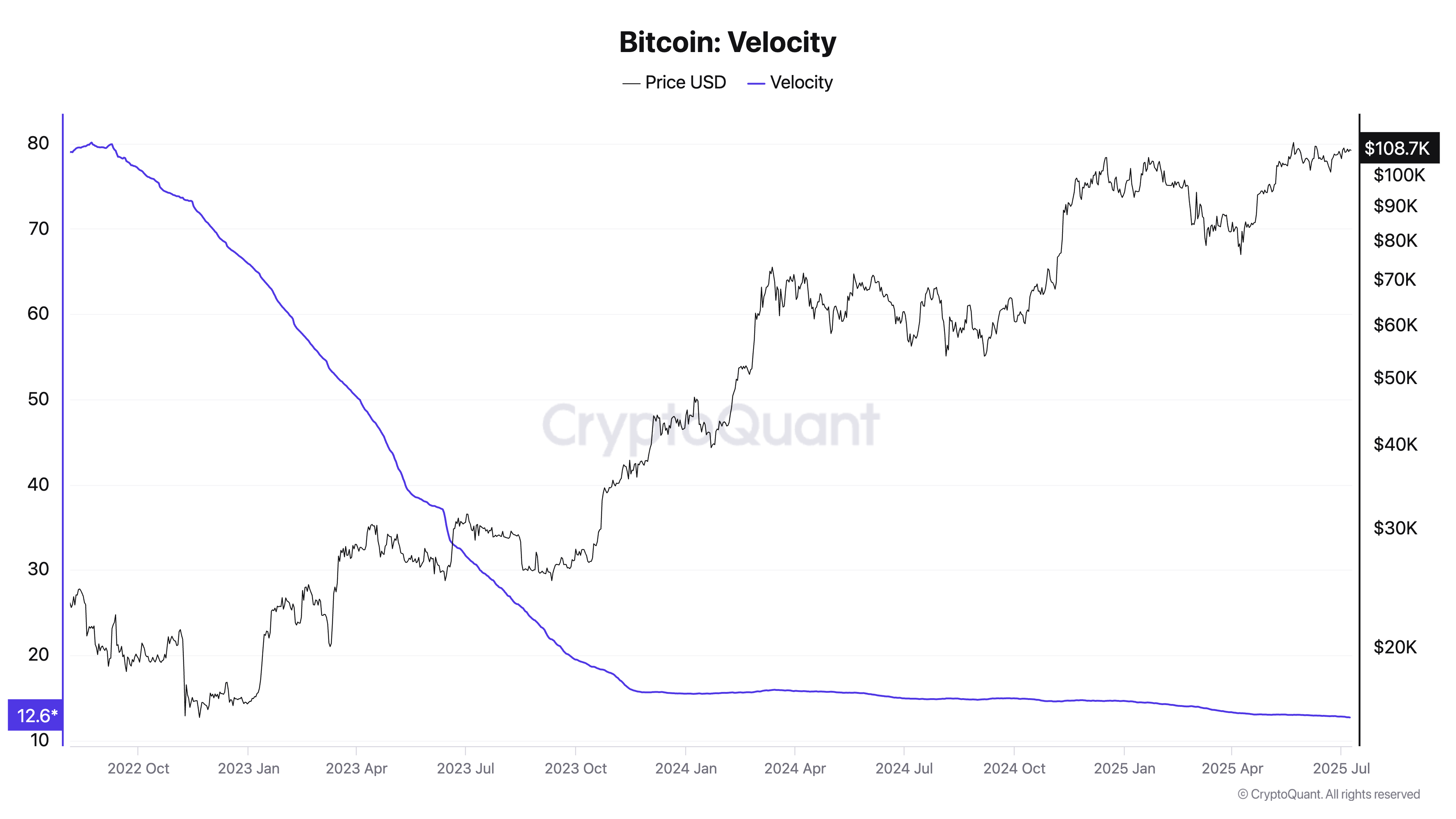 Når en aktivas velocity faller, beveger færre mynter seg gjennom nettverket, noe som indikerer at innehavere velger å sitte stille i stedet for å handle eller selge.