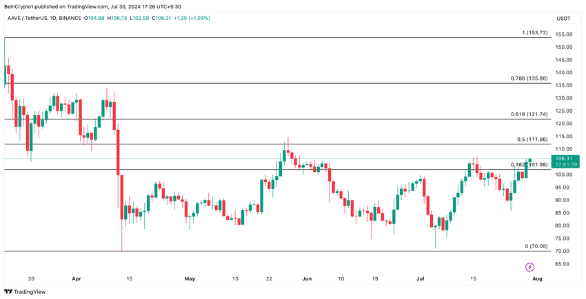 Hvis AAVE opprettholder sin oppadgående trend, vil prisen stige til et to-måneders høydepunkt på $ 111,86.