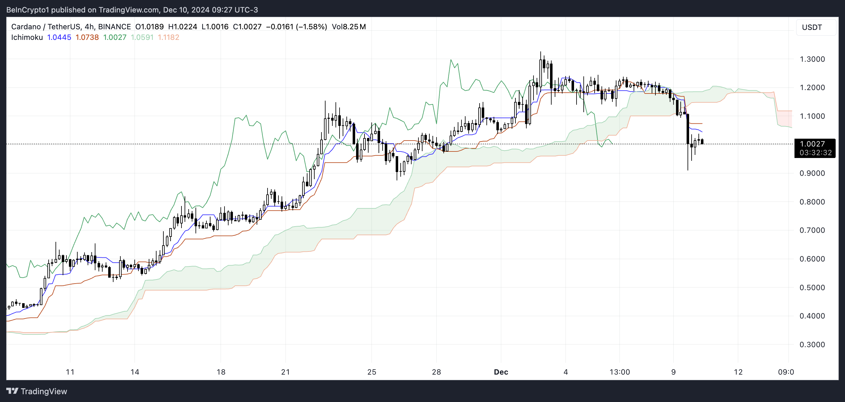 Ichimoku Cloud viser en bearish utsikt for Cardano