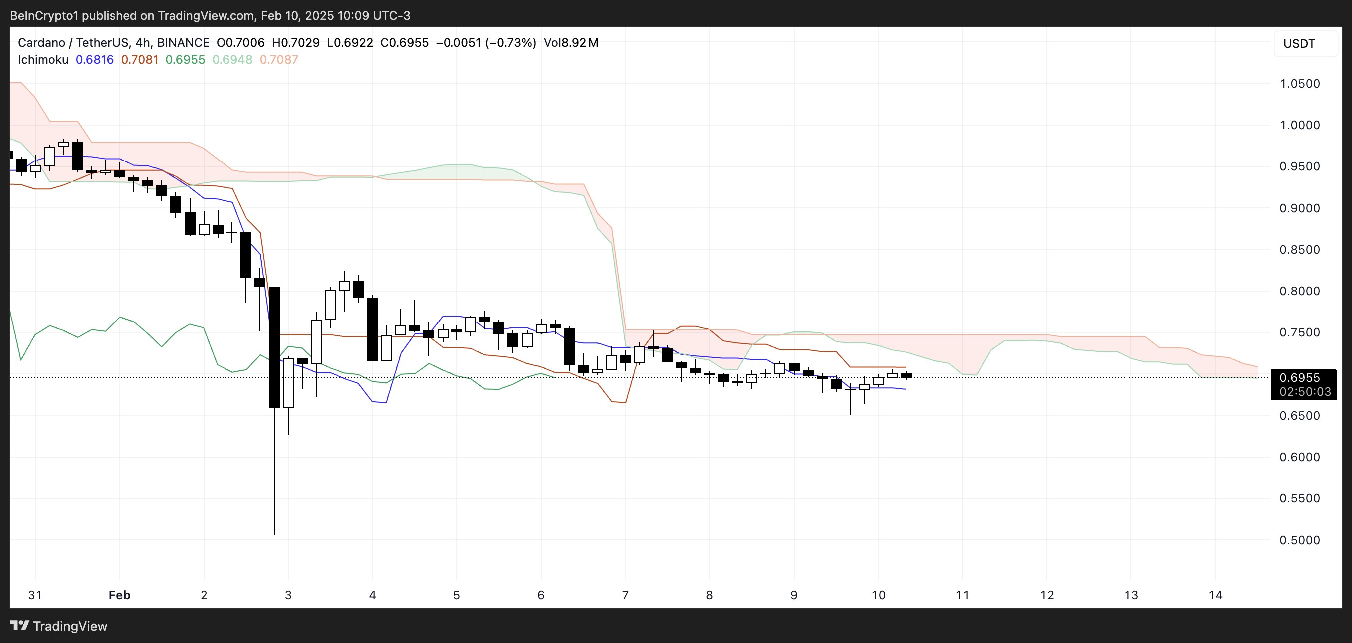 Ichimoku Cloud viser at ADA sliter med å bygge momentum