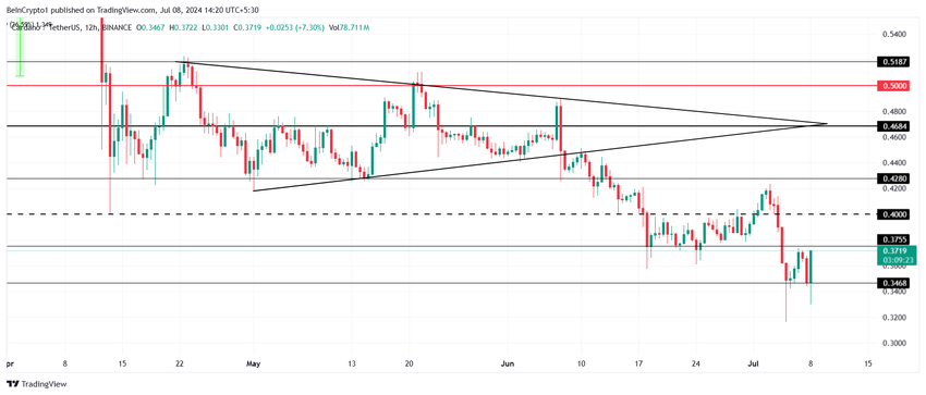 Cardanos pris har steget imponerende med 7 % de siste 24 timene, men ADA har ennå ikke brutt motstanden på $0,37. Når du handler rett under den, ser det ut til at altcoin venter på en enorm positiv utløser som kanskje ikke kommer.