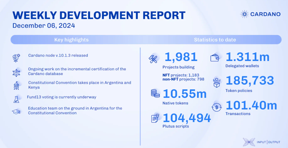 Denne prestasjonen kommer i en tid med bemerkelsesverdig vekst for Cardano. Ifølge Input Output Global (IOG) har nettverket nylig overgått 100 millioner totale transaksjoner etter å ha registrert 2,65 millioner nye transaksjoner i november. Cardano-baserte prosjekter har også vokst til 1979, med 603 nye initiativer lagt til.