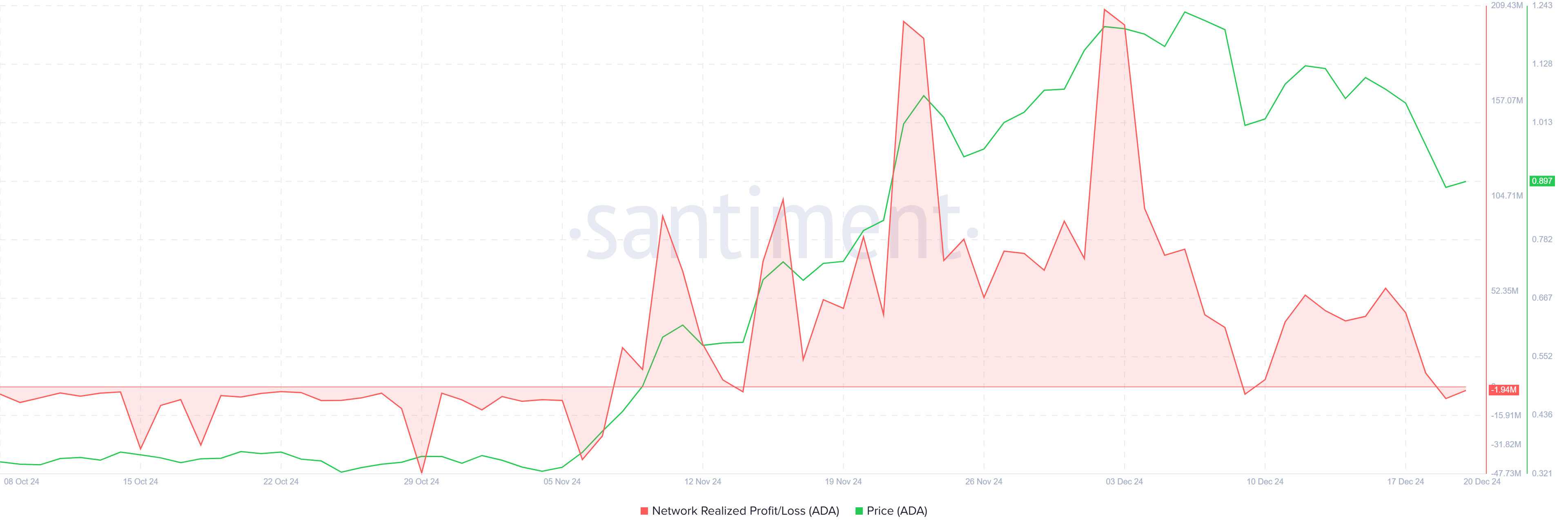 Dette er første gang på fire måneder at ADAs MVRV-ratio har dykket inn i denne kritiske sonen, noe som signaliserer en potensiell bunn. Tidligere tilfeller av indikatoren som går inn i dette territoriet har blitt fulgt av betydelige prisoppganger. Når ADA går inn i denne fasen, følger investorer nøye med på altcoinen for tegn på oppadgående momentum.