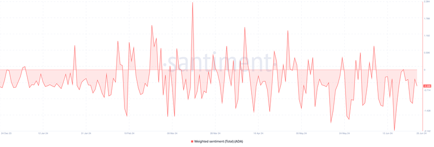 En vurdering av ADAs vektede sentiment bekrefter dette. På pressetidspunktet er verdien av beregningen -0,58.