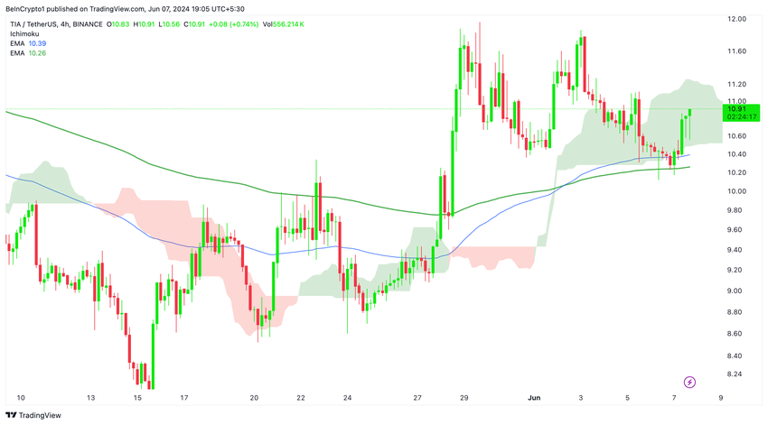TIA viser et sterkt bullish momentum, og finner støtte på viktige tekniske nivåer til tross for motstand fra den daglige Ichimoku-skyen.