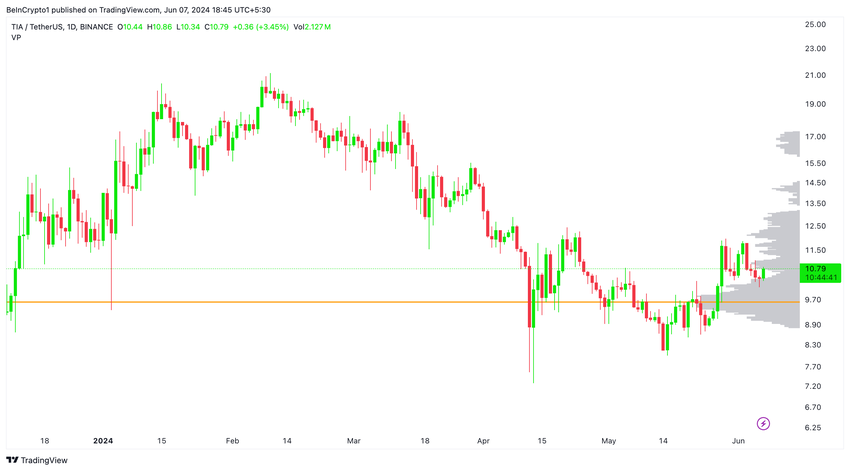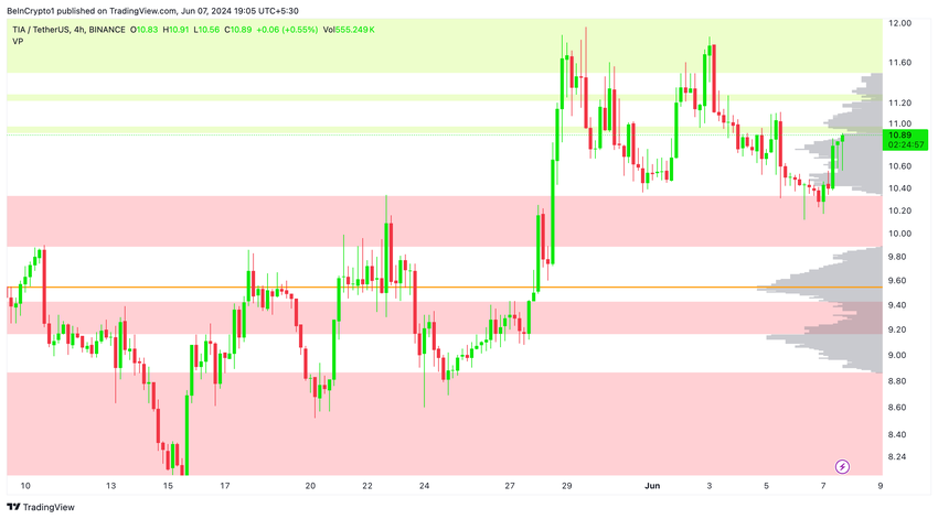 Prisen på TIA har hentet seg inn 46% fra det lokale lavpunktet på $ 7,30 som ble satt i midten av april, og viser et sterkt bullish momentum.