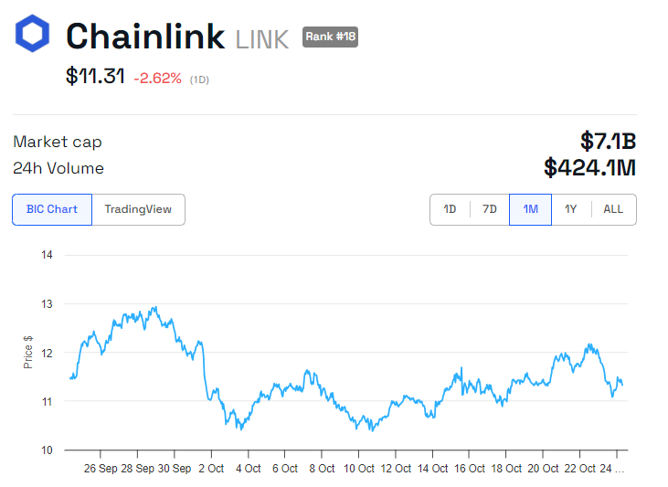 Til tross for fremskrittet med CCIP, fortsetter Chainklinks drivende token, LINK, å registrere dårlig prisutvikling. Data fra BeInCrypto viser at LINK-tokenet er ned nesten 3 %. Det handles for $ 11,31 i skrivende stund.