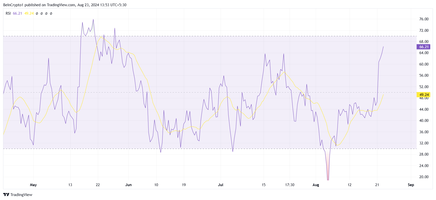 Imidlertid viser Relative Strength Index (RSI) at LINK nærmer seg terskelen for overkjøpt sone. Enhver ytterligere prisøkning drevet av konsekvent akkumulering fra hvaler og andre investorer er risikabel.