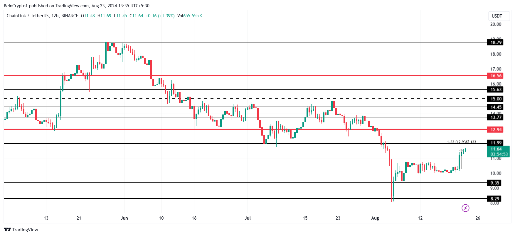 Chainlinks pris kan gjenvinne en betydelig mengde tapte fortjenester fra juli-krasjen ved å snu en motstand. Merket ved $ 12,00, har dette nivået tidligere blitt testet som støtte.