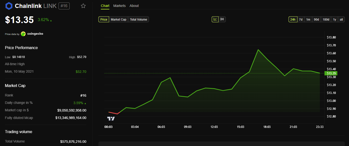 Selv om Chainlinks LINK-token ikke er direkte involvert i Mastercard-samarbeidet, står det fortsatt til å dra nytte av det. Til tross for at det nådde et månedlig lavpunkt tidligere denne uken, har tokenets pris skutt i været de siste timene, og har steget rundt 8 % siden i går.