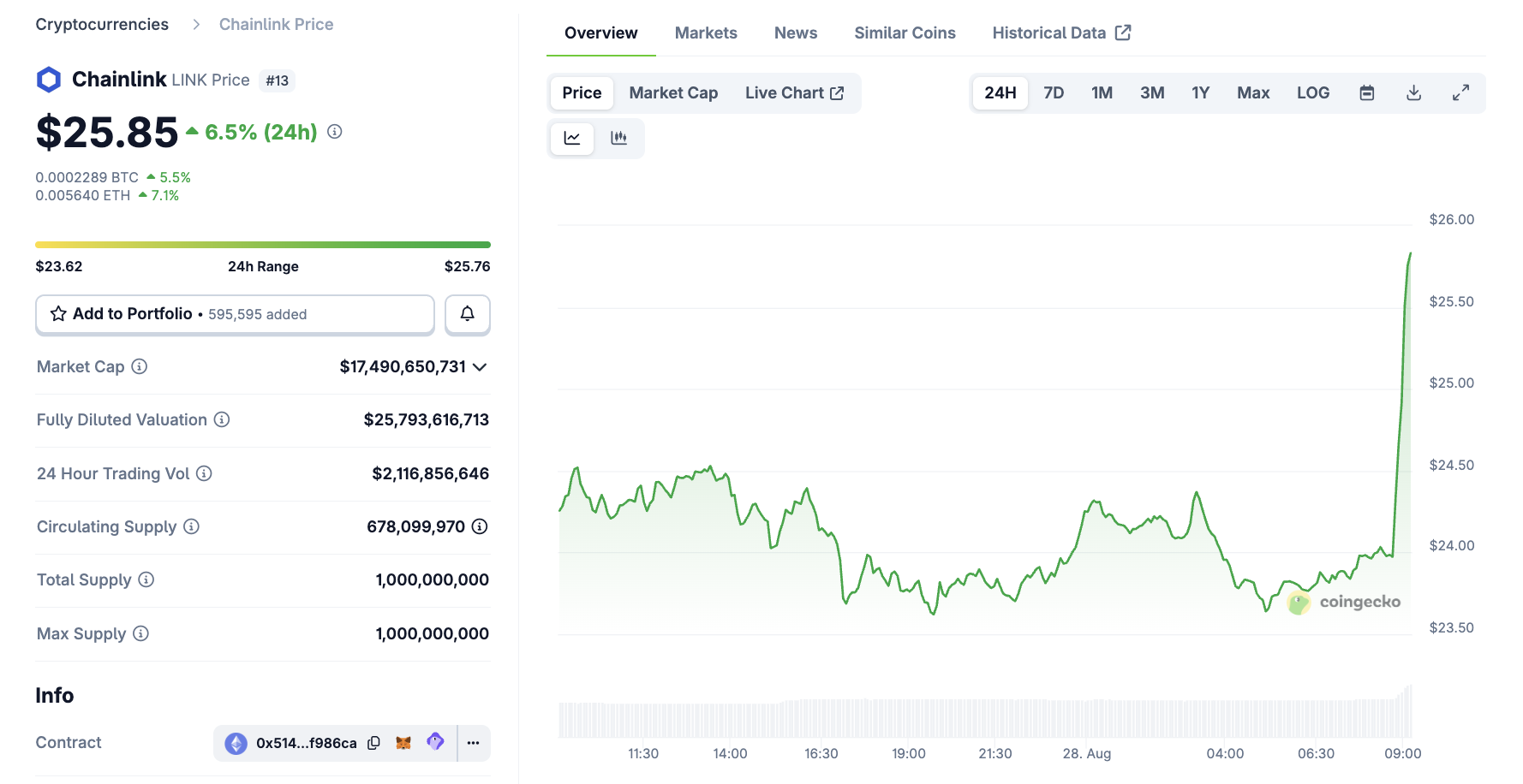 Chainlink, blokkjedeinfrastrukturfirmaet, har prioritert amerikansk regulatorisk overholdelse i det siste. Firmaet nyter godt av ambisiøse partnerskap, og dets LINK-token fikk støtte fra en ny DAT i dag. Blant alle disse faktorene førte Chainlinks partnerskapskunngjøring til at tokenprisen steg.