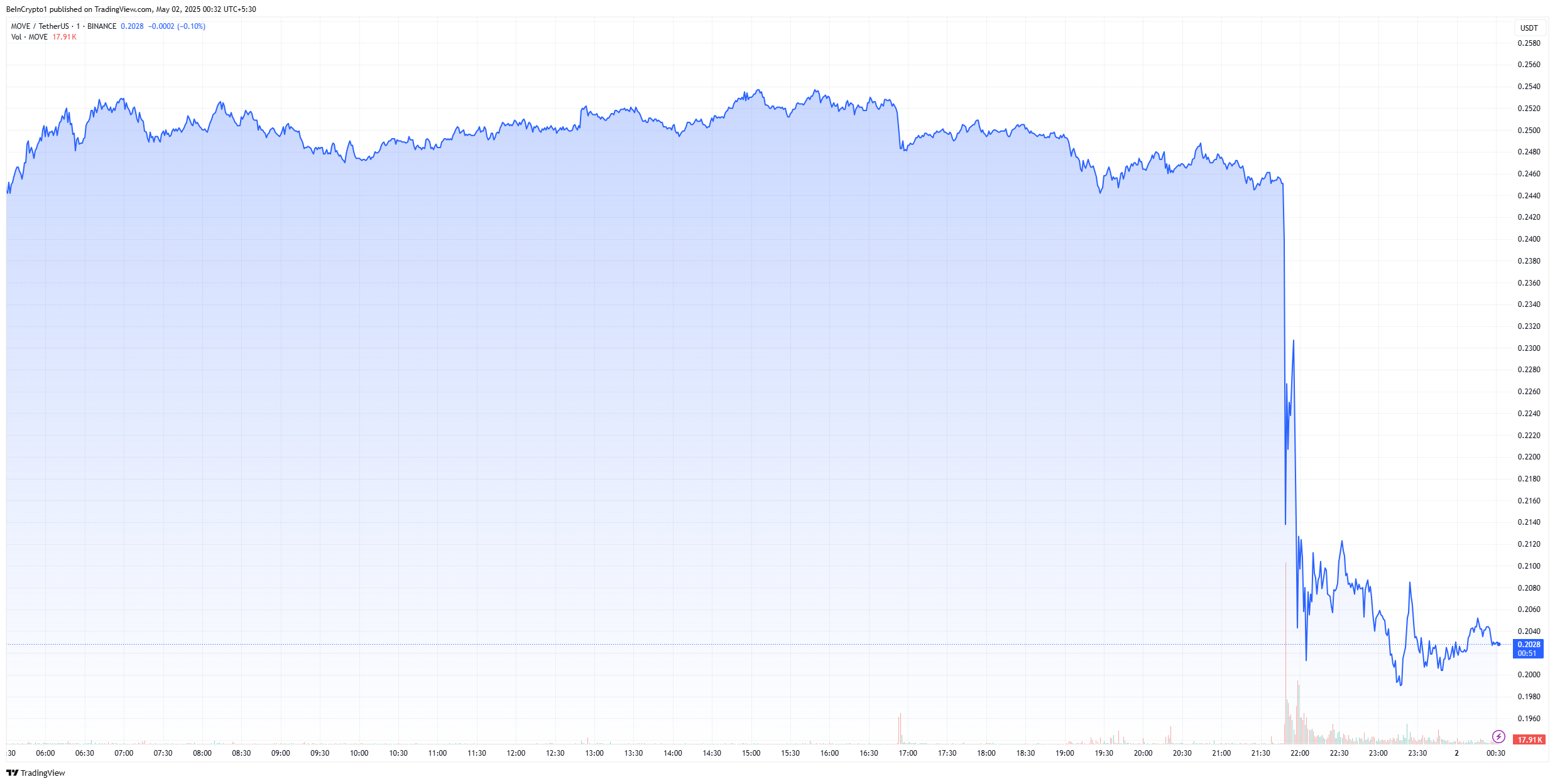 Coinbase kunngjorde at de fjerner MOVE, som deretter stupte over 16 %. Børsen beskrev ingen spesifikke grunner for denne handlingen, noe som førte til spekulasjoner i fellesskapet.