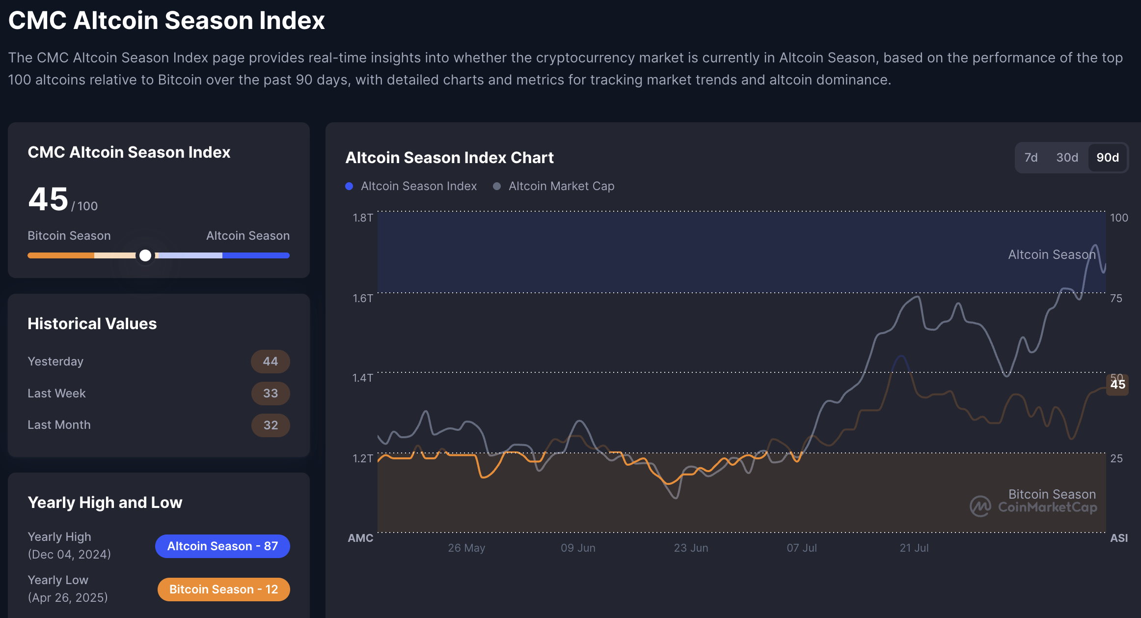 Selv om Altcoin Season Index forblir relativt lav på rundt 40–45, fortsatt under terskelen på 75 som trengs for å offisielt erklære en altcoin-sesong, er det forsiktig optimisme. Gjeldende makrotrender og markedssignaler legger grunnlaget for en sterk oppgang i Q3 2025.
