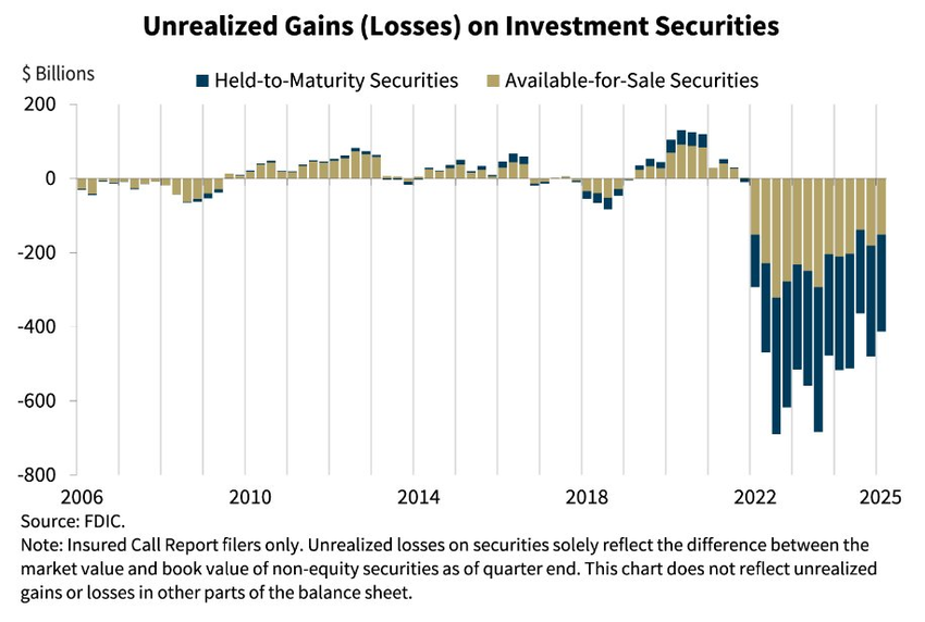 Dette strukturelle presset kommer midt i stramme kredittforhold, høye renter og høye urealiserte tap på verdipapirporteføljer. Hvis bredere økonomisk stress eskalerer, risikerer disse faktorene å begrense utlån og likviditet.