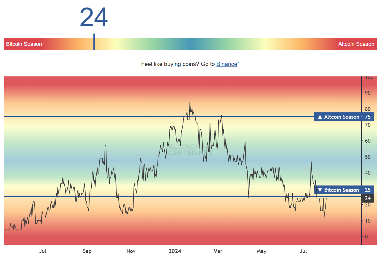 Ifølge altcoin-sesongindeksen opplever kryptomarkedet for øyeblikket en Bitcoin-sesong. Med mindre minst 75 % av de 50 beste tokensene, ekskludert stablecoins, overgår BTC, må investorer fortsette å vente på altcoin-sesongen.