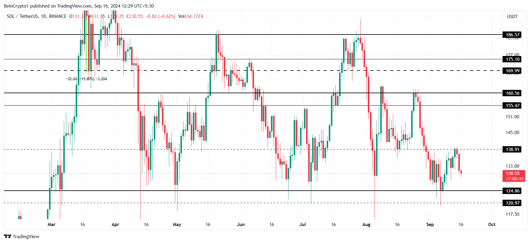 Solana har konsolidert seg over $ 120-merket siden mars, noe som gjør $ 138 til et nøkkelmotstandsnivå for øyeblikket. Å bryte gjennom denne motstanden ville indikere at SOL kunne fortsette sin oppadgående bane til tross for nylige bearish bekymringer.