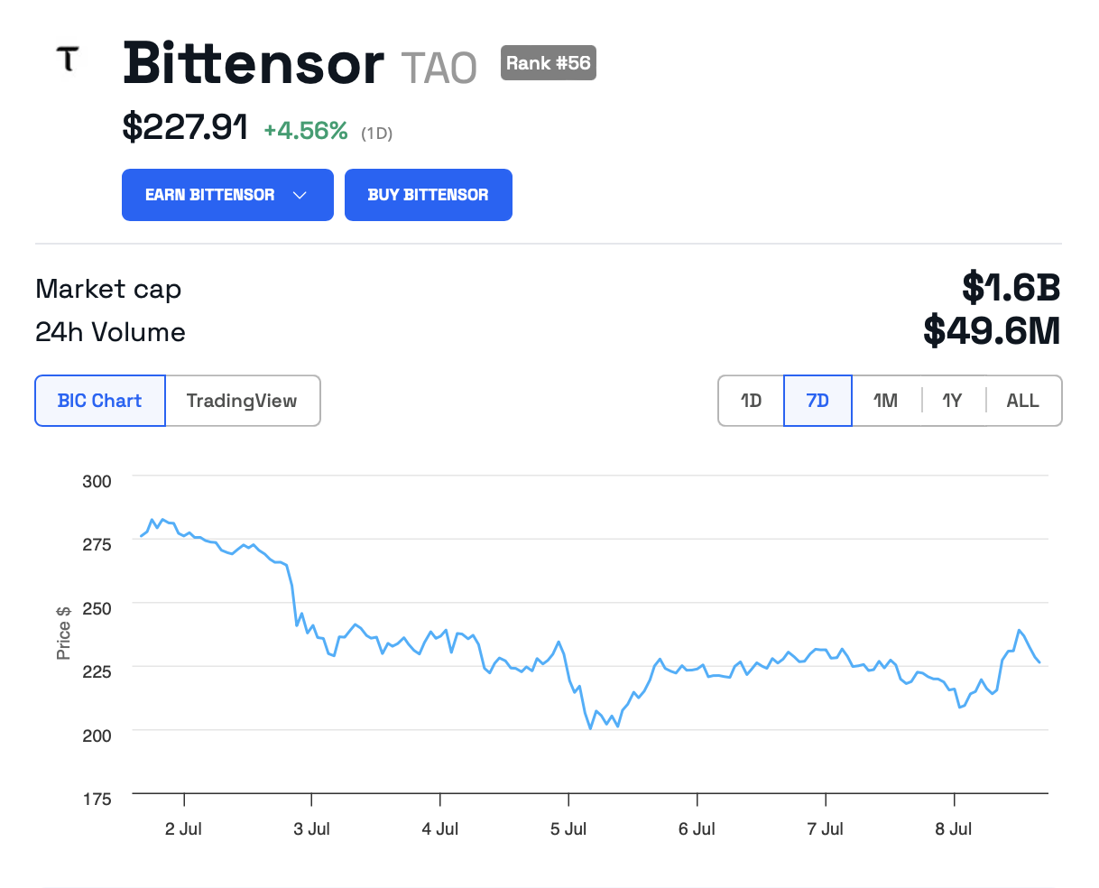 2. juli førte en sikkerhetsutnyttelse til at Bittensor-brukere mistet 32 000 TAO-tokens verdt rundt 8 millioner dollar på grunn av en lekket privat nøkkel. Denne hendelsen førte til at TAOs pris falt med 15%, og nådde det laveste nivået på seks måneder.