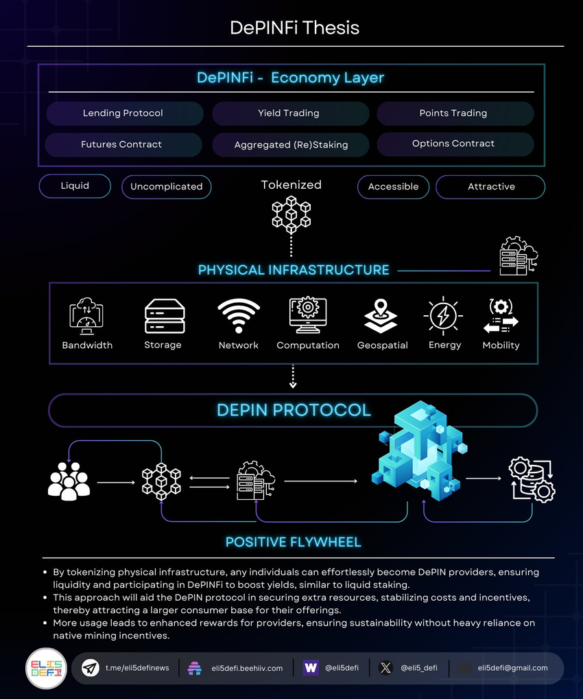 I følge Eli5DeFi, en bemerkelsesverdig Web3-analytiker, foreslår DePinFi et overbevisende middel på disse problemene. Ved å tokenisere fysisk infrastruktur gjør DePinFi det mulig for enkeltpersoner å enkelt bli DePin-leverandører, sikre likviditet og legge til rette for deltakelse i DePinFi for å øke utbyttet, i likhet med flytende innsats.